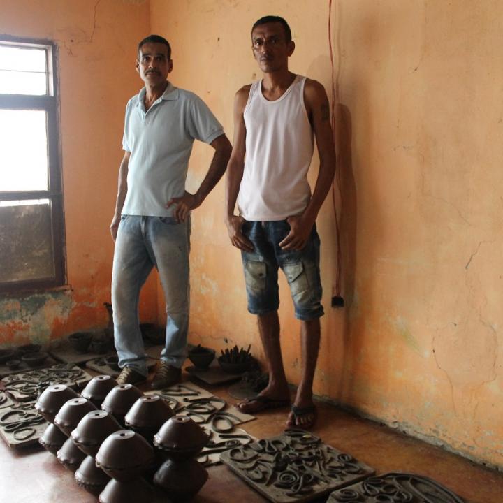 Los hermanos Canos trabajan para mantener viva la alfareria de Ponedera Atlantico. las orillas del rio Magdalena proveen de barro a los alfareros de Ponedera Atlantico, miembros de unos catorces nucleos familiares interconectados por el apellido Cano que tiene como fuente de ingreso la elaboracion de articulos de ceramica como alcancias y jarrones.
